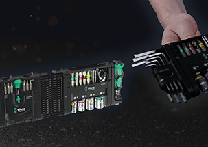 Compact Wera screwdriving tool set with the 36 most important tools for window construction.